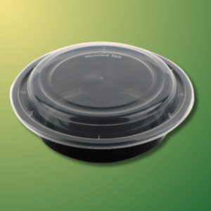 ROUND 48OZ BLACK CONTAINER WITH CLEAR LID 150/CS