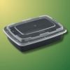 BLACK THREE COMPARTMENT RECTANGLE CONTAINER WITH CLEAR LID 150/CS
